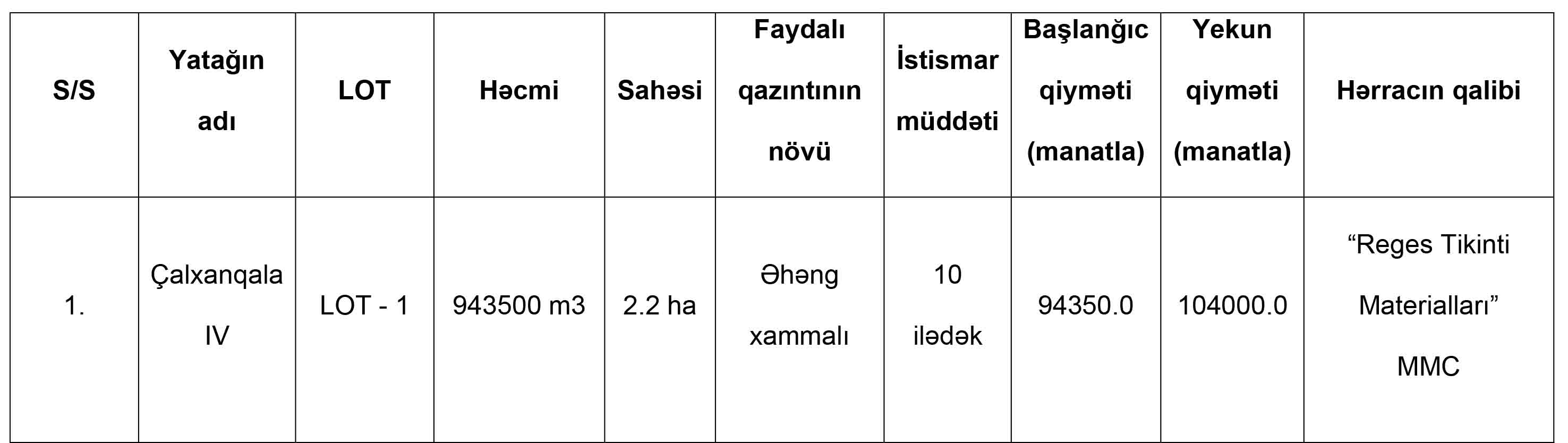 Naxçıvan MR İqtisadiyyat Nazirliyi yanında Əmlak Məsələləri Dövlət Xidmətinin tabeliyində “Hərracların Təşkili Mərkəzi” publik hüquqi şəxs tərəfindən yerin təkindən istifadə ilə bağli 30 iyun 2025-ci il tarixdə keçirilmiş hərracın nəticəsi