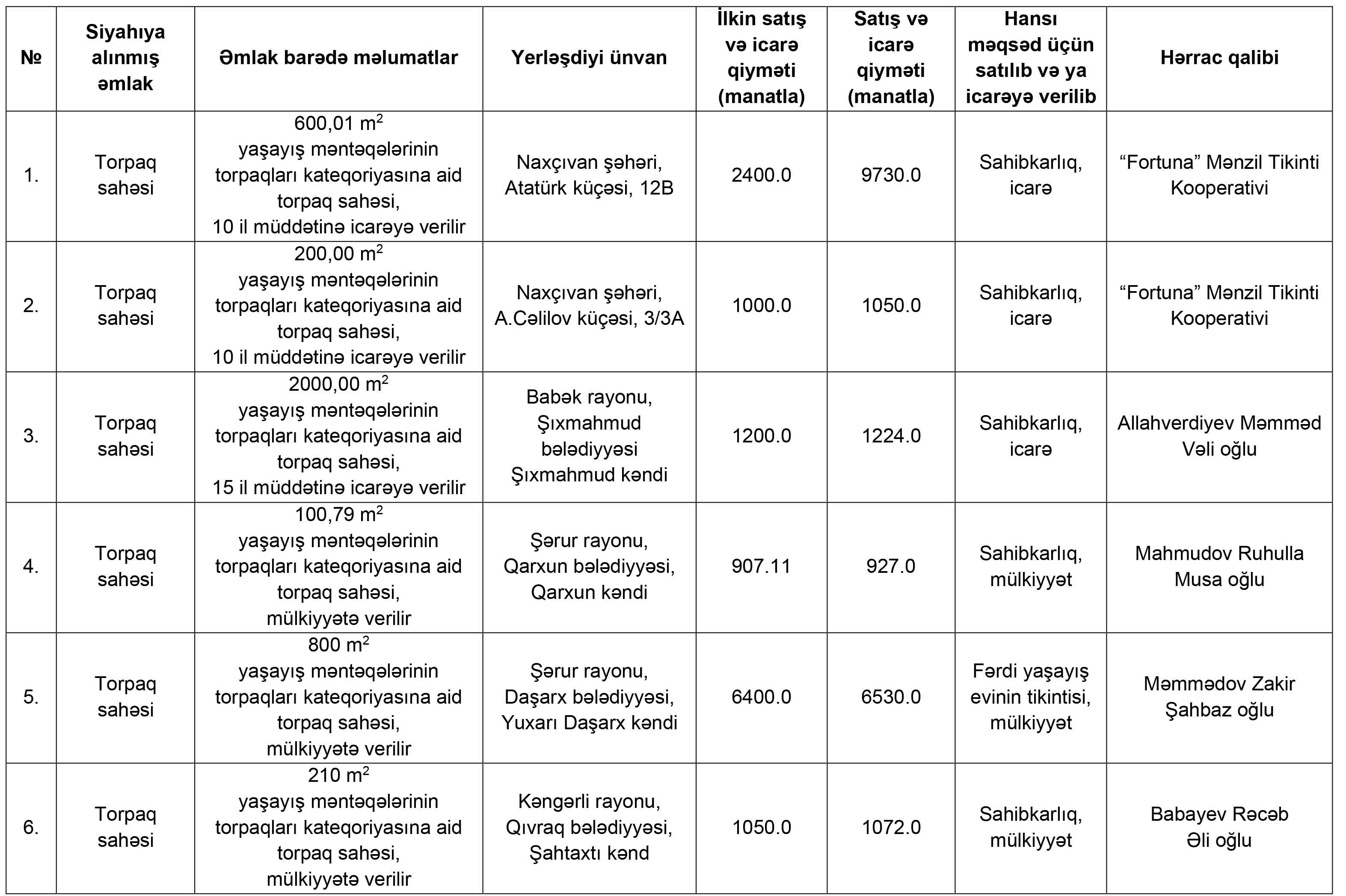 Naxçıvan Muxtar Respublikasının İqtisadiyyat Nazirliyi yanında Əmlak Məsələləri Dövlət Xidmətinin tabeliyində “Hərracların Təşkili Mərkəzi” publik hüquqi şəxs tərəfindən 09 dekabr 2025-ci il tarixdə keçirilmiş torpaq hərraclarının nəticələri haqqında məlumat