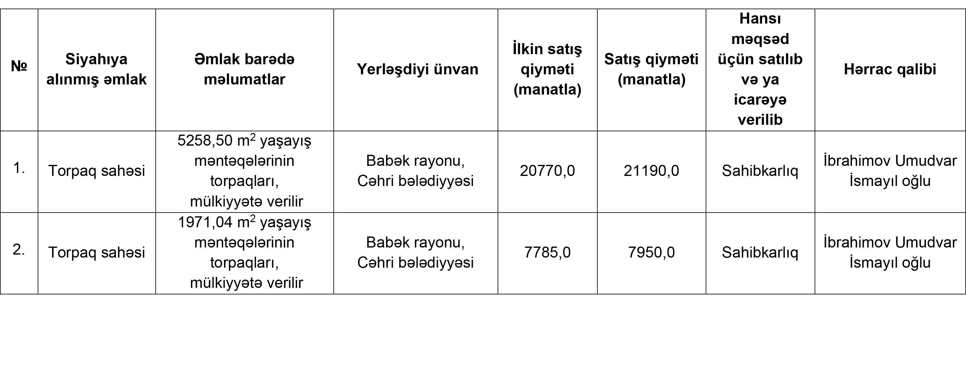 Naxçıvan Muxtar Respublikasının İqtisadiyyat Nazirliyi yanında Əmlak Məsələləri Dövlət Xidmətinin tabeliyində “Hərracların Təşkili Mərkəzi” publik hüquqi şəxs tərəfindən 22 iyul 2025-ci il tarixdə keçirilmiş torpaq hərraclarının nəticəsi