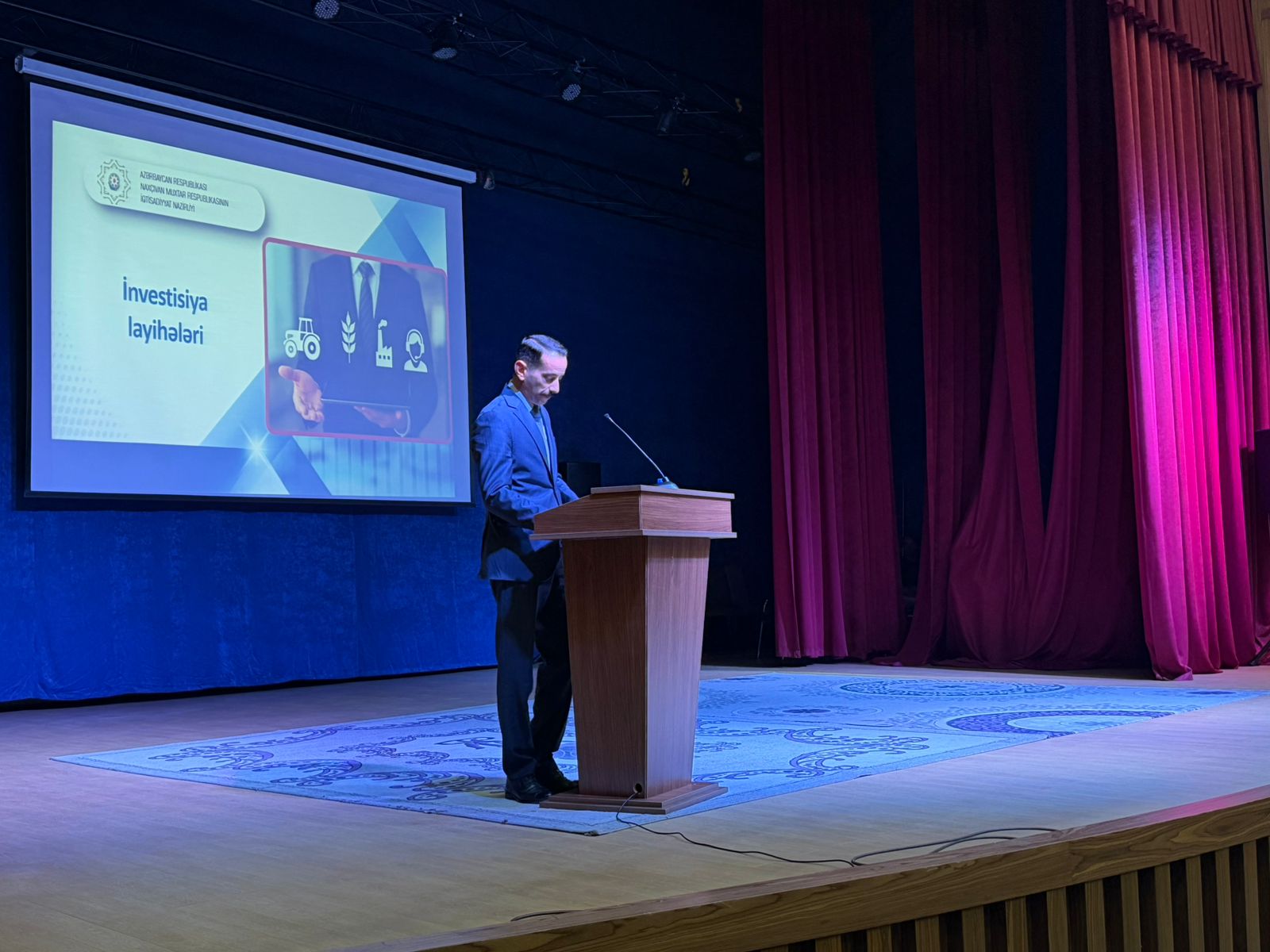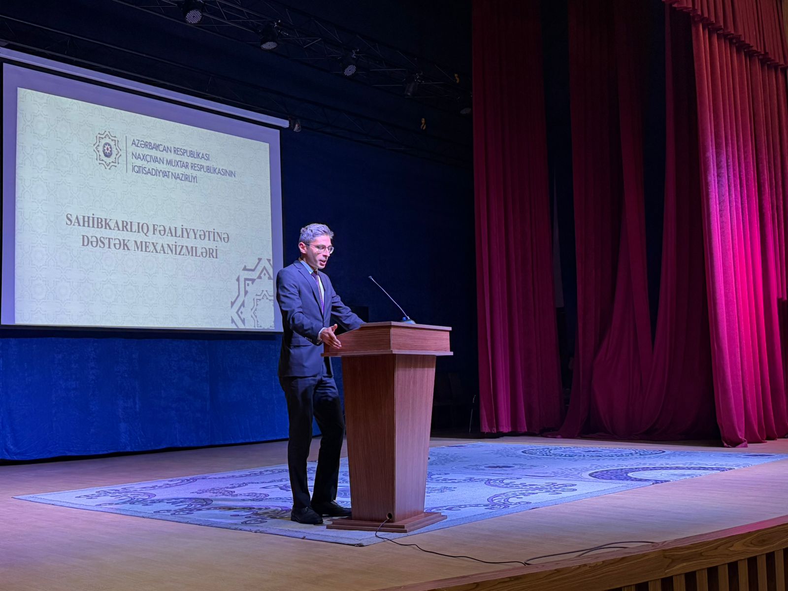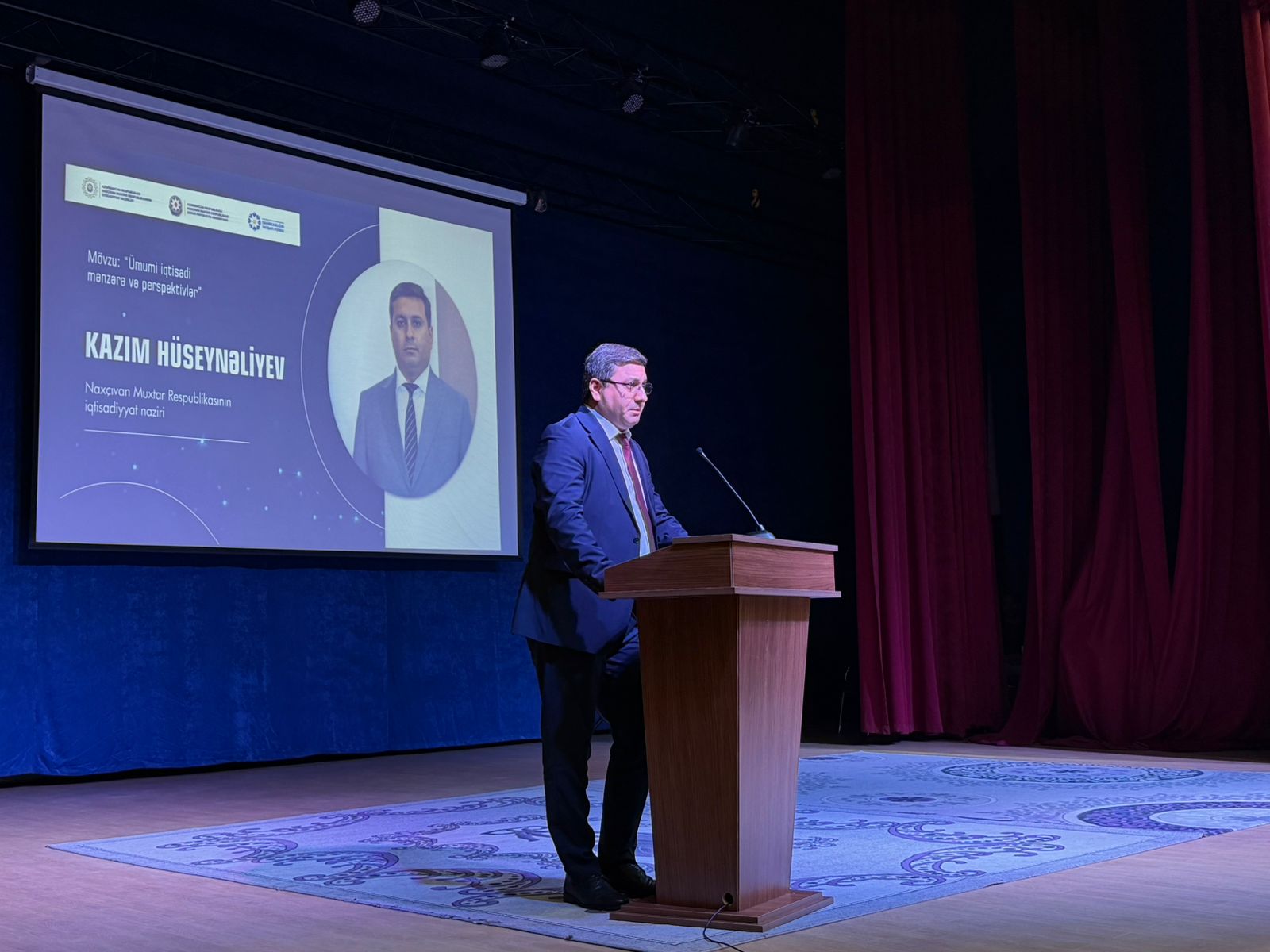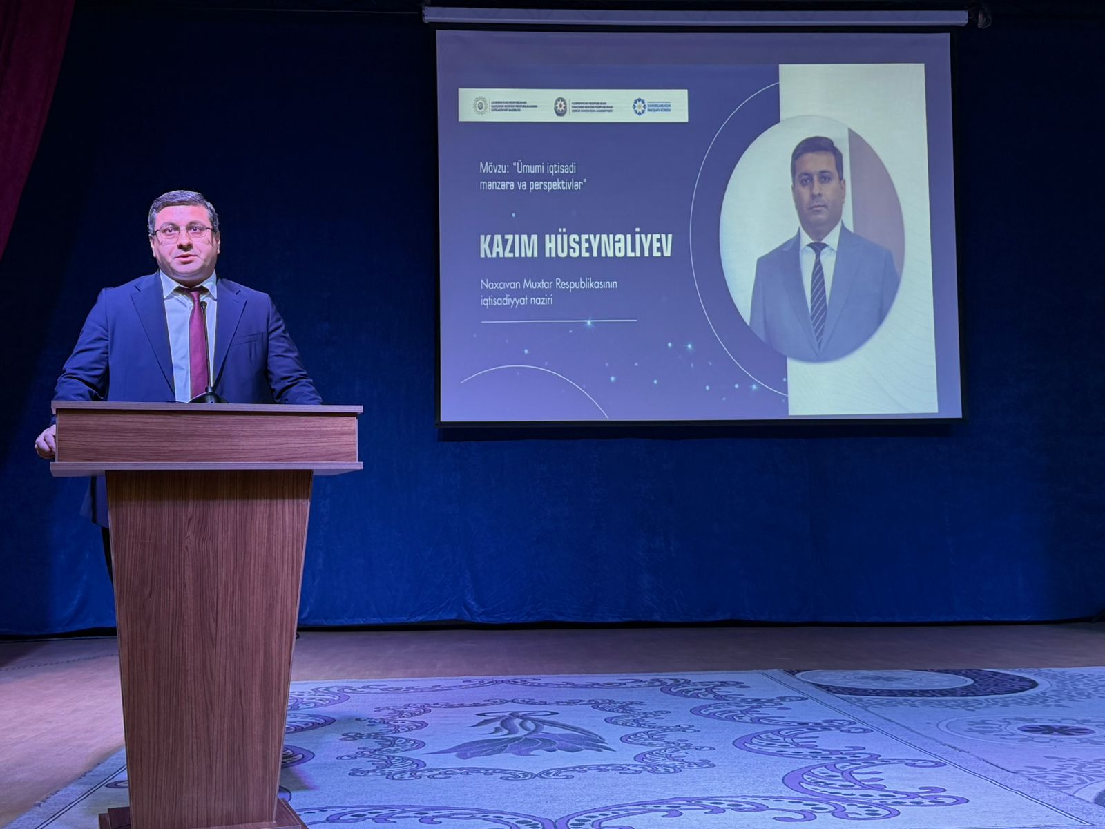 Naxçıvan Muxtar Respublikasının iqtisadiyyat naziri Kazım Hüseynəliyev “Ümumi iqtisadi mənzərə və perspektivlər” mövzusunda çıxış edərək bildirib ki, hazırkı dövrdə iqtisadi inkişafın əsas elementləri dayanıqlılığın təmin olunması, innovasiyaların tətbiqi və rəqabət qabiliyyətinin artırılmasıdır. Nazir vurğulayıb ki, muxtar respublikada iqtisadiyyat müxtəlif sahələrdə uğurla inkişaf edir və bu inkişafın davamlı olması üçün sahibkarların rolu xüsusi əhəmiyyət daşıyır. Kazım Hüseynəliyev sahibkarları regionun iqtisadi potensialından və dövlətin təklif etdiyi dəstək alətlərindən səmərəli istifadə etməyə, yeni investisiya layihələri icra etməkdə fəal olmağa, eləcə də mövcud fəaliyyətlərini genişləndirməyə çağırıb. Nazir qeyd edib ki, qarşıda duran əsas vəzifə regionun sosial-iqtisadi inkişafının sürətləndirilməsidir və bu hədəfə dövlət və özəl sektorun sıx əməkdaşlığa ilə nail olmaq olar.