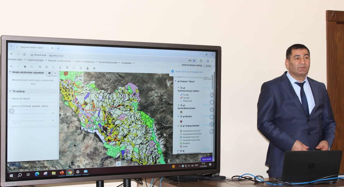 Torpaqların Elektron Kadastr Uçotu İnformasiya Sisteminin funksiyaları, torpaq sahələrinin uçotu və qeydiyyatı prosesində sistemin rolu, məlumat bazalarının idarə olunması qaydaları iştirakçıların diqqətinə çatdırılıb.